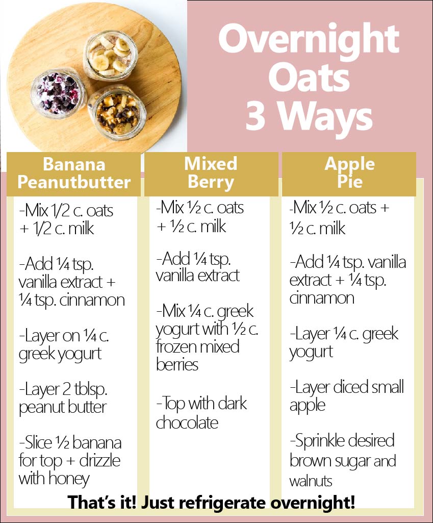 Today I will be sharing with you my FAVORITE breakfast food! Overnight oats are so easy to make, they’re healthy, and they’re delicious! My favorite part: You can make them in advance!